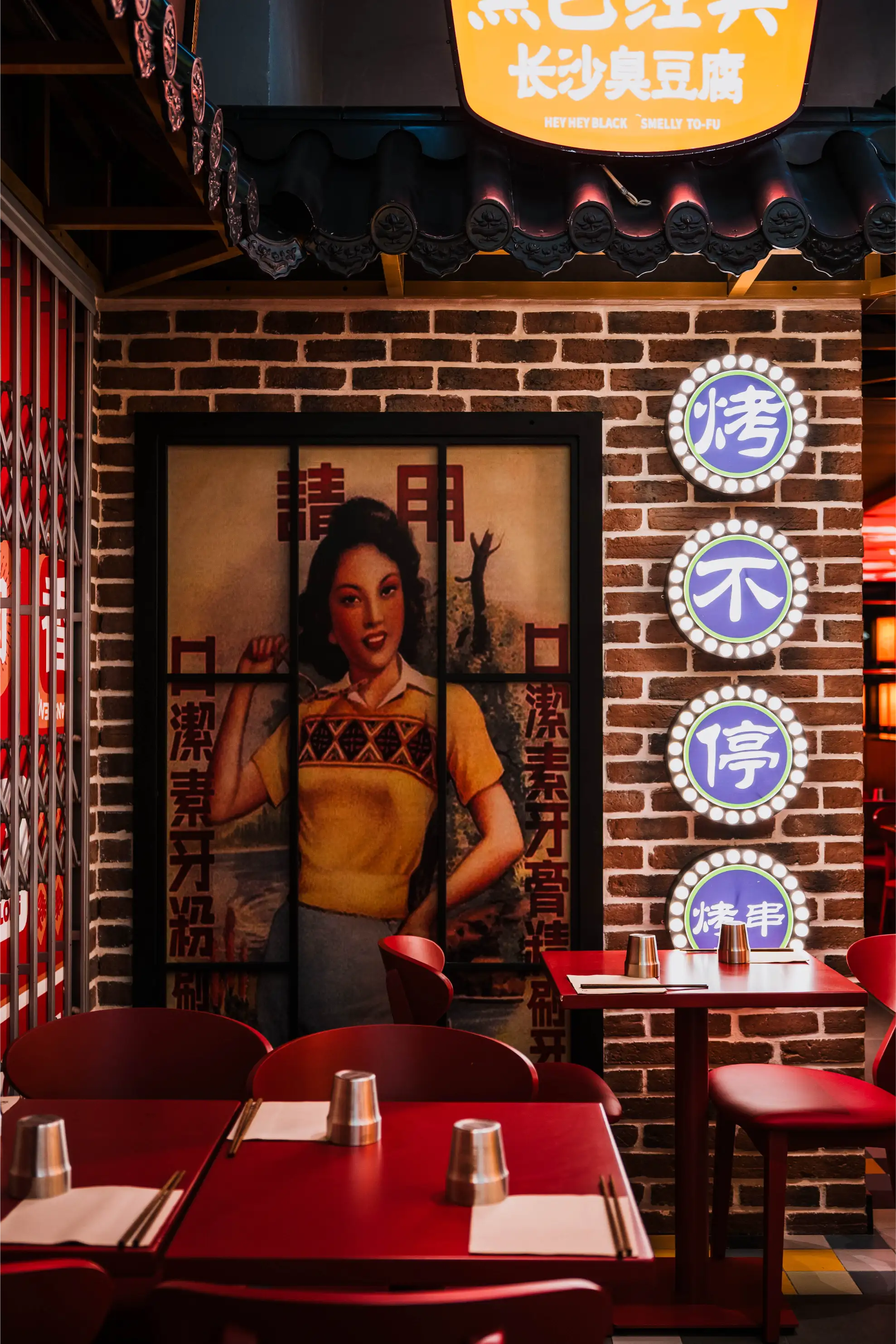 Des lanternes rouges suspendues, des néons verts, des affiches d’époque, des détails chinés…Chaque recoin du restaurant vous transporte dans le old Shanghai, entre tradition et énergie contemporaine.Ici, tout est pensé pour vous faire voyager.